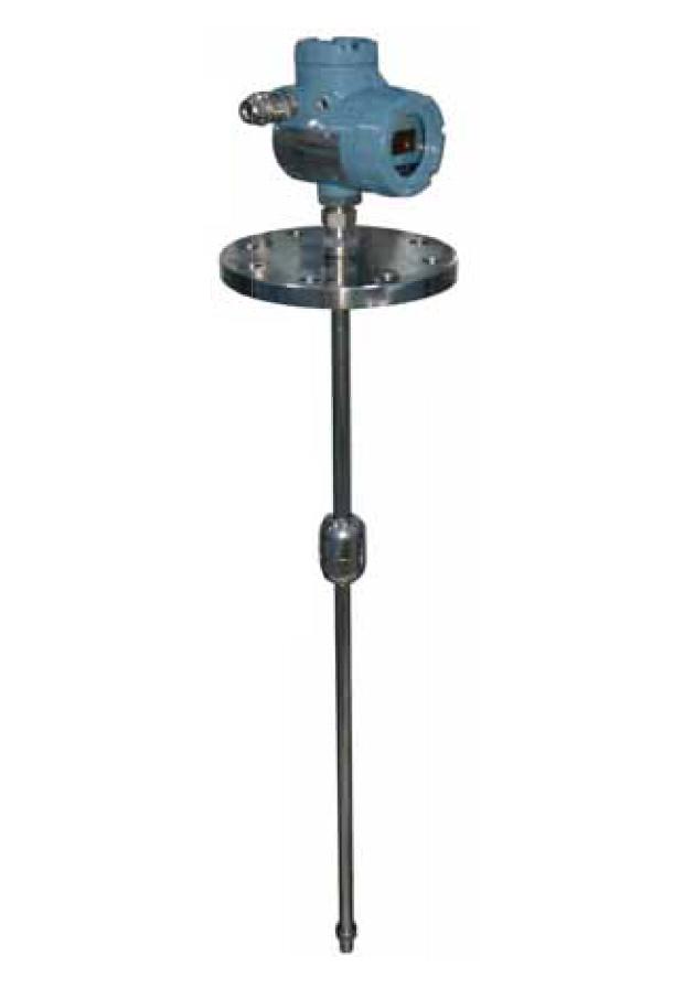 变送器的检测管内装有一组干簧管和精密电阻,当管外磁浮子随液位上下变化时,检测管内位于液面处的干簧依次接通使变送器的电阻值发生变化,接线盒内的转换电路模块将其阻值转换成电流输出。