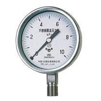 ★【不锈钢膜盒压力表】不锈钢膜盒压力表根据普通膜盒压力表的结构原理而研制的具有耐腐蚀的微压测量仪表。导压系统及外壳均采用不锈钢材料制成。应用于耐腐蚀要求较高的工艺流程中 对各种气体介质的微压和负压的测量;也可用于钴炉通风、气体管道、燃烧装置等及其它类似设备上。是引进国外xj****技术设备中******仪表实现国产化的理想配套产品。结构原理 ★【普通膜盒压力表】 膜盒压力表适用于测量对铜合金不起腐蚀作用,无爆炸危险的微压和负压。气体广泛应用于锅炉通风和气体管道等设备上,本仪表可以就地安装并现场指示
