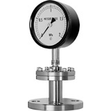 为使通用型压力表能适用于测量强腐蚀、高温、高粘度、易结晶、易凝固、有固体浮游物的介质压力以及须***避免测量介质直接进入通用型压力仪表和防止沉淀物积聚且易清洗的场合,应须***采用由隔膜隔离器与通用型压力仪表组成一个系统的隔膜表。 隔膜表主要用于石油化工、制碱、化纤、染化、制药、食品和制酪等工业部门生产过程中测量流体介质压力之用。