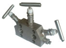 三阀组 体积小、重量轻、结构简单、坚固耐用,零部件互换性好,整体装置对温度和静压变化及冲击有可靠的稳定性,适用于1151、3051、FC、K、CFC、SBCC等各系列差压变送器,流量变送器产品配套使用,可直接安装在产品上,与产品成一体化,简化了产品的安装结构。三阀组的作用是从引压点将信号引入变送器的正负压测量容室,实现引压点与测量容室之间接通或断开,以及正负压测量容室之间接通或断开,亦可作为差压平衡检测零点用和卸变送器时作截止阀用。